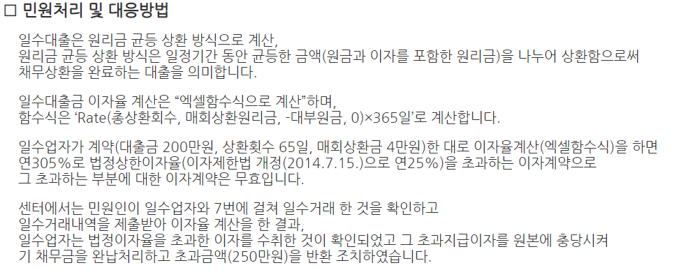 일수대출로 인한 불법사금융 피해 상담 사례